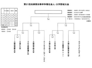第21回兵庫県知事杯争奪社会人・大学野球大会が11月17日(月)より開催されます。